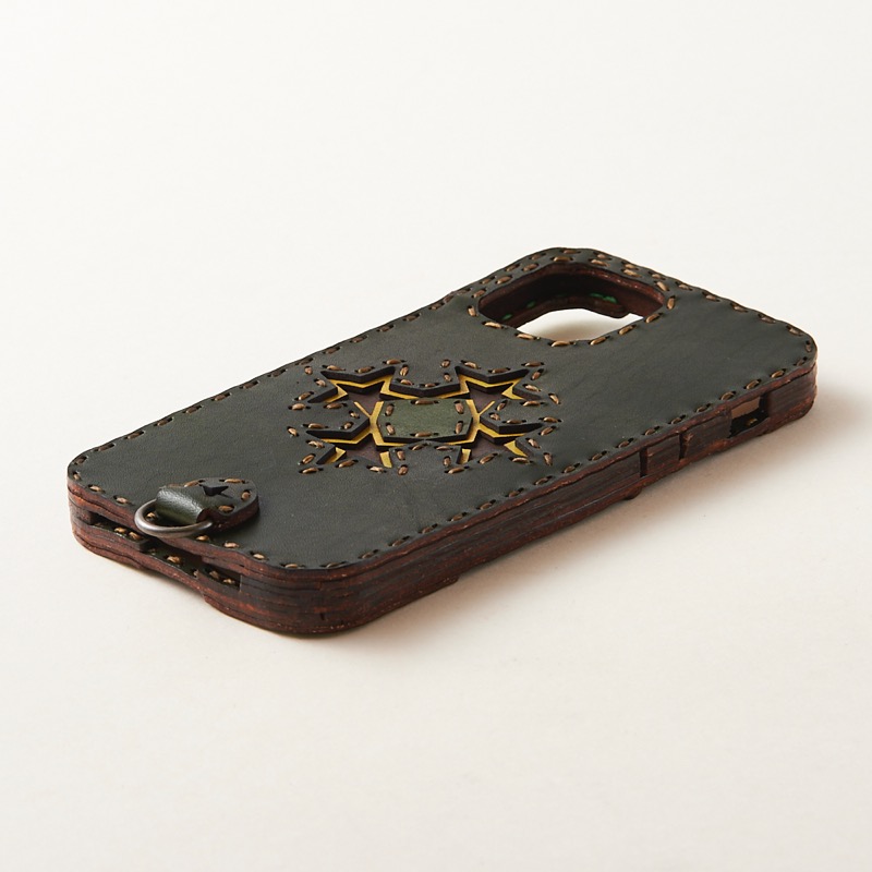ケース側面をすべてレザーで覆うことで保護性を強化しました。革の上からサイドボタンの操作も可能です。