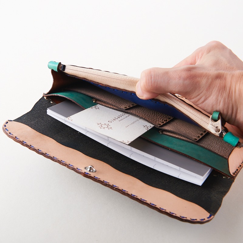 持ち運びやすさバツグン!長財布と通帳ケース、2つの機能を兼ね備えた新しいスリム型ウォレットが登場!お金・通帳・キャッシュカード・印鑑など大切な貴重品を1つにまとめることができるアイテムがウォレットシリーズに仲間入りしました。バッグの中でかさばらないスリム型なので普段使いのお財布として使っていただくのも良し。銀行へのお出かけの際に、預金通帳・キャッシュカードいった貴重品をまとめて持ち運びできる通帳ケースとしても便利な仕様です。ZIP付きのポケット部分は小銭入れだけでなく印鑑などの小物入れとしてもGOOD。長財布or通帳ケース。ニーズに合わせてお使いください。
