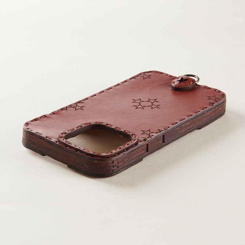 ケース側面をすべてレザーで覆った保護性の高いデザインで、サイドボタンはケースの上から操作可能です。