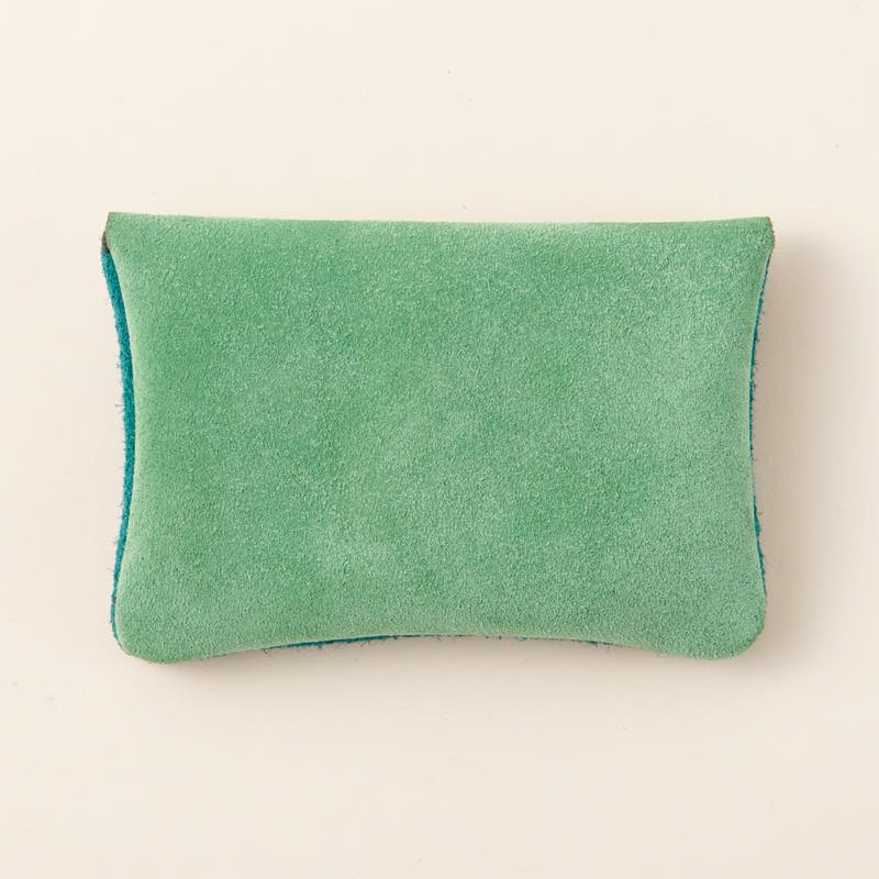 スエードを使用したカードサイズのポーチです。フタはスナップボタンで、カードだけでなくイヤホンやリップなどの小物類の持ち運びにも便利。すべてスエードで出来ているので、やわかかくなめらかな手触りです。少数のみ入荷した通常使用していないカラーのスエードで作った一点物で、なくなり次第終了の限定アイテムです。※画像5枚目は商品サイズのイメージ画像です。