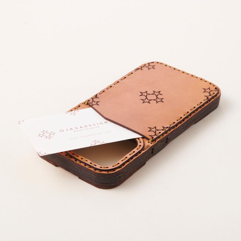 ケース側面をすべてレザーで覆った保護性の高いデザインで、サイドボタンはケースの上から操作可能です。