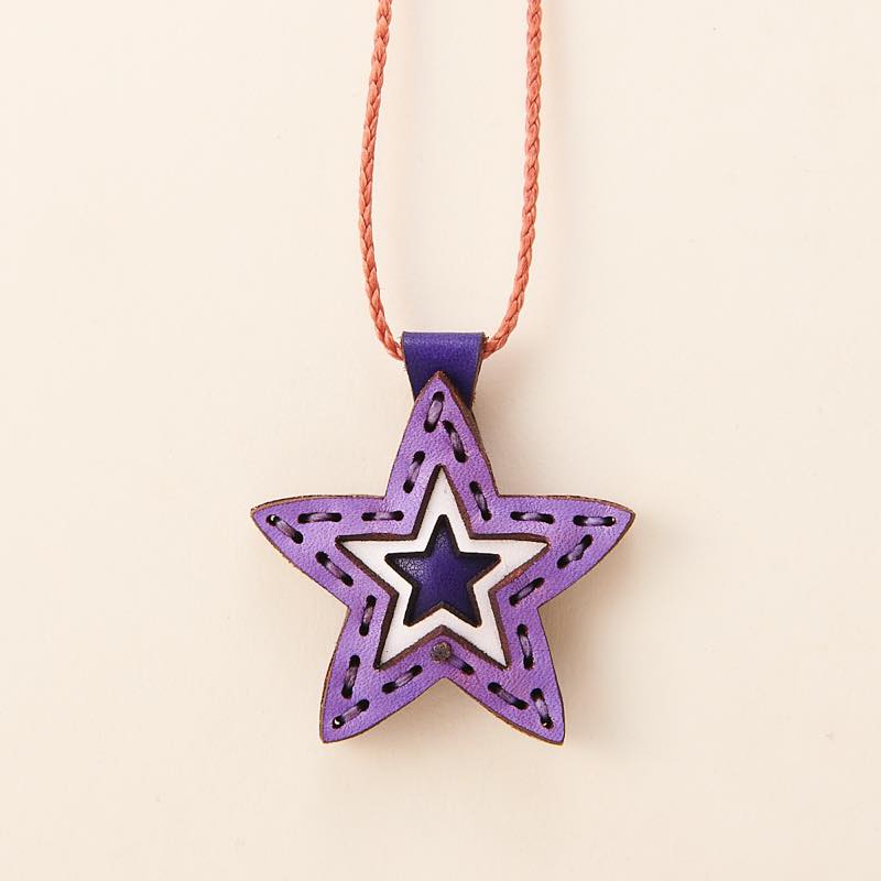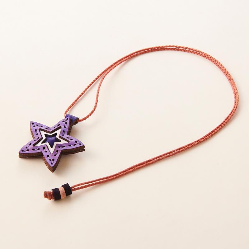5芒星をデザインしたネックレスは、3枚の革を重ねた仕上がりが高級感もあります。裏表同じカラーでデザインされているため、どちらの面を見せてもスタイリッシュな印象を与えます。紐部分にはレザービーズを使っており、紐を自由自在に調整してお使いいただけます。このネックレスで素敵な推しコーデをお楽しみください。