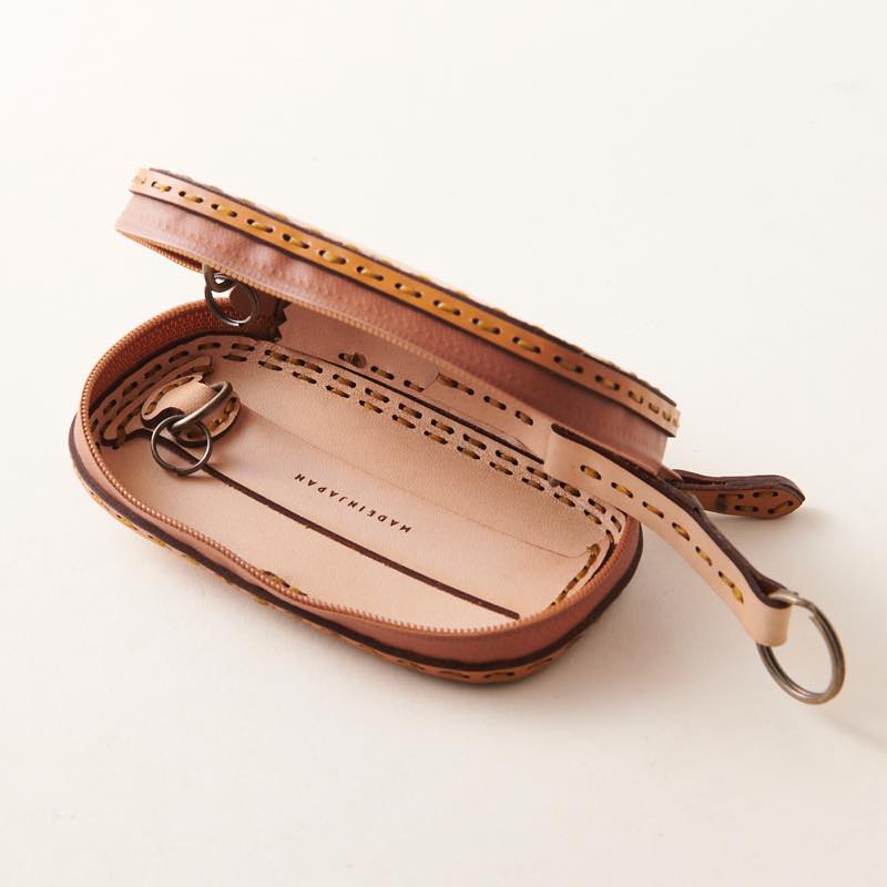 ダブルジップのラウンドファスナーと厚めのマチを付けることで中身を大切に保護するだけでなく、車用のスマートキーや厚みのあるノンタッチキー・複数の鍵を収納可能。