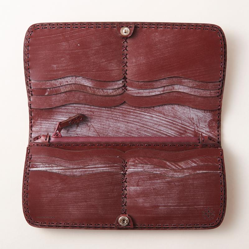 ジップタイプのコインポケットが付いたロングウォレットは、カードポケットにモスクをイメージしたカットを施しました。