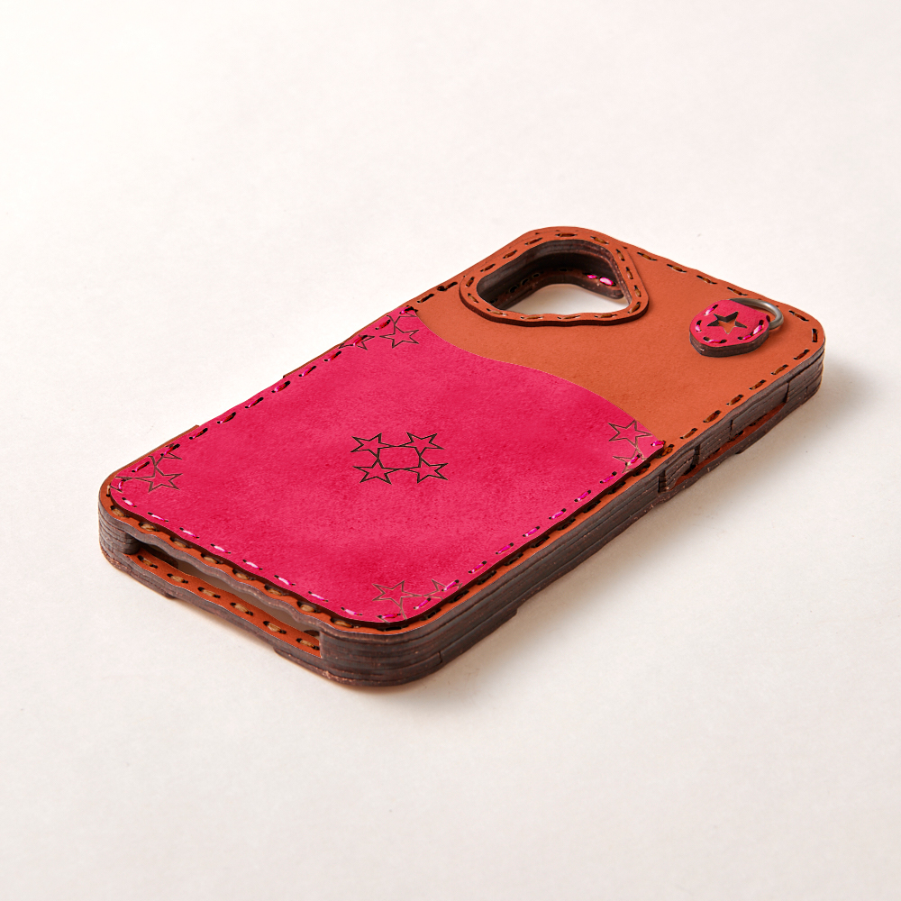 ケース側面をすべてレザーで覆った保護性の高いデザインで、サイドボタンはケースの上から操作可能です。