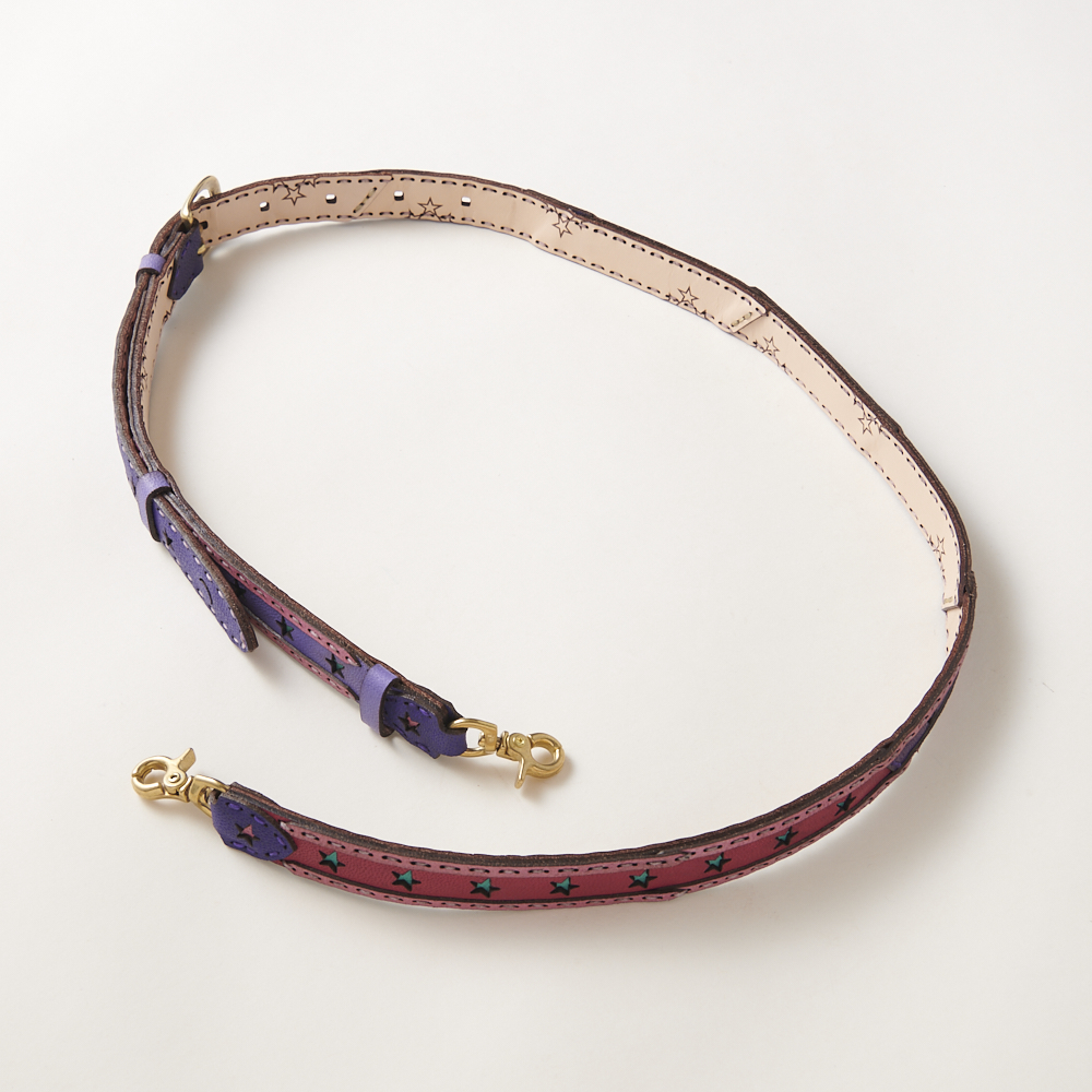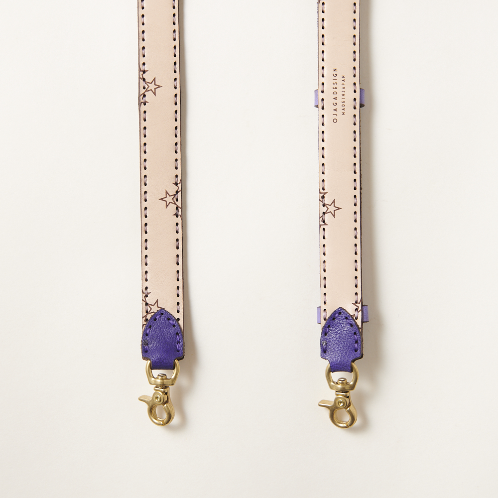 カラフルな五芒星が魅力のショルダーストラップ [ KOSTER ]  このショルダーストラップは、一目で目を引くデザインが特徴。すっきりとした細幅タイプで、どんなスタイルにもマッチします。裏側には「オジャガスター」が焼印されており、細部にまでこだわりが光ります。 さらに、無数に散りばめられた五芒星が、あなたのコーディネートに華やかさをプラス! 手縫いで仕上げられたこのストラップは、温もりと特別感が感じられるアイテムです。あなたのスタイルを一層引き立てるこのショルダーストラップを、ぜひお手元に!!