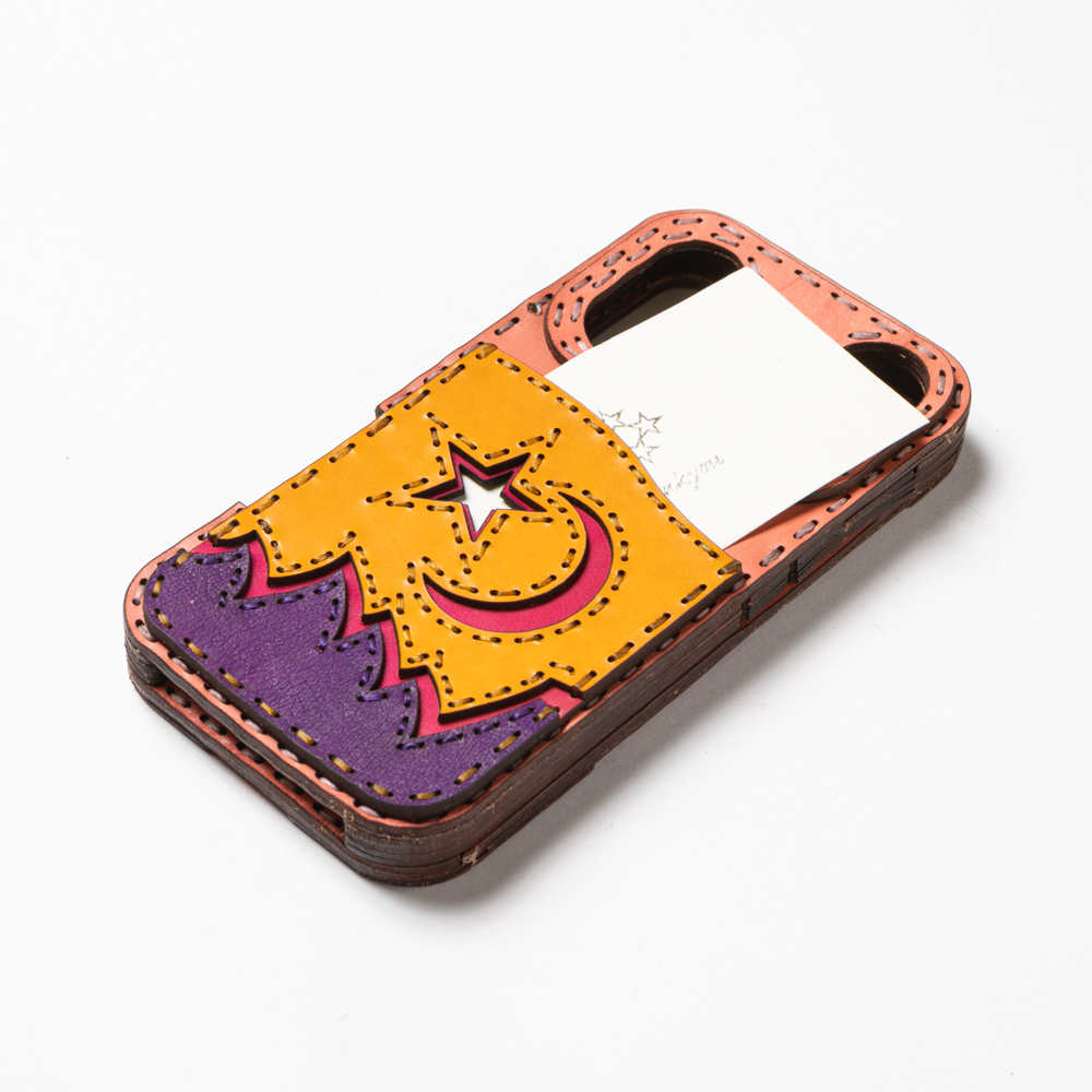 ポケット部分は空に浮かぶ月星と山をデザインし、風景画のような幻想的な仕上がりのロングセラーアイテムです。