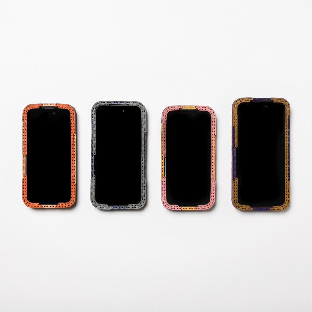 ケース側面をすべてレザーで覆った保護性の高いデザインで、サイドボタンも革の上から操作が可能。