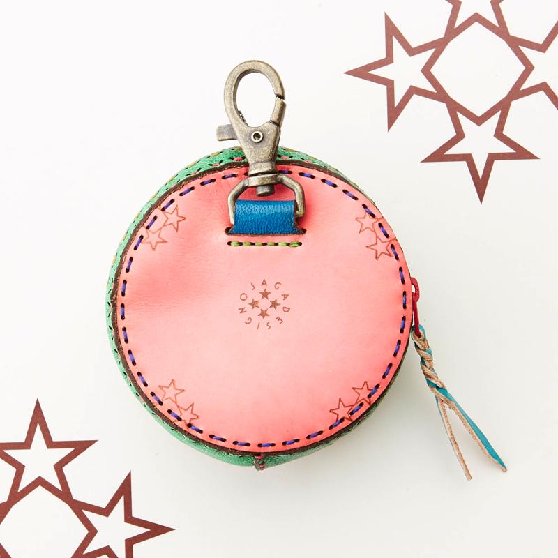 ボリューム感のあるラウンドポーチです。横に並んだ五芒星がポイントとなり、コロっとしたフォルムが可愛らしい印象を与えてくれます。化粧ポーチ、まとめて持ち歩きたい小物入れなどに最適です。ナスカン付きなので、ベルトループやバッグにも取り付けられます。お好みのカラーをお選び下さい。