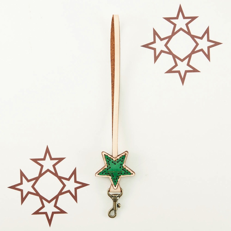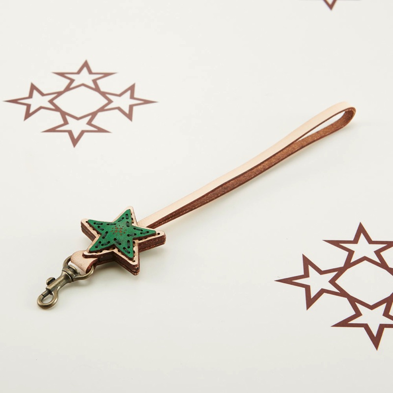 五芒星のワンポイントが可愛らしいレザーハンドストラップです。