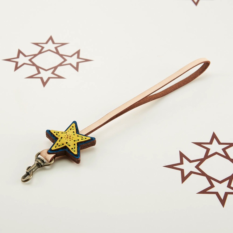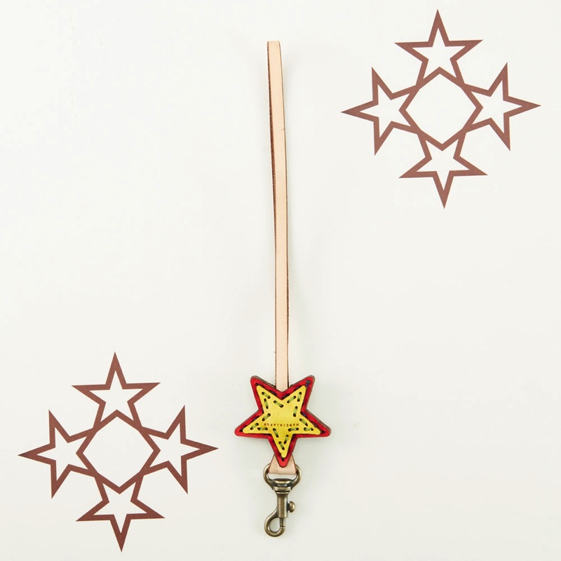 五芒星のワンポイントが可愛らしいレザーハンドストラップです。