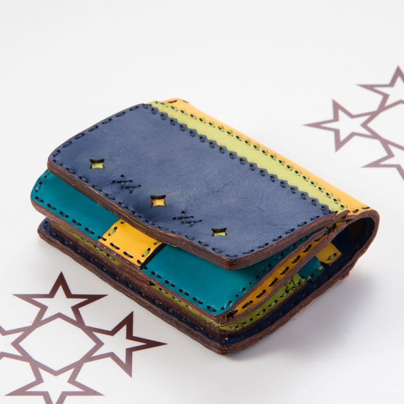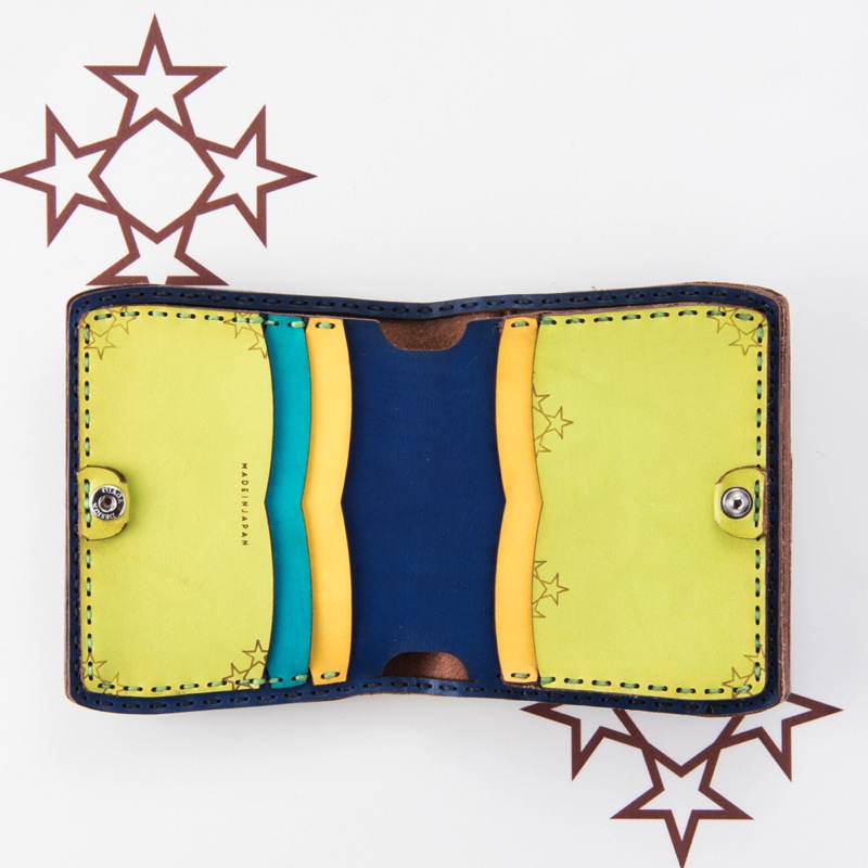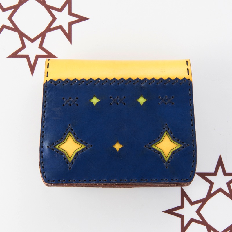 ダイヤの形のような四芒星がデザインされたショートウォレットです。
