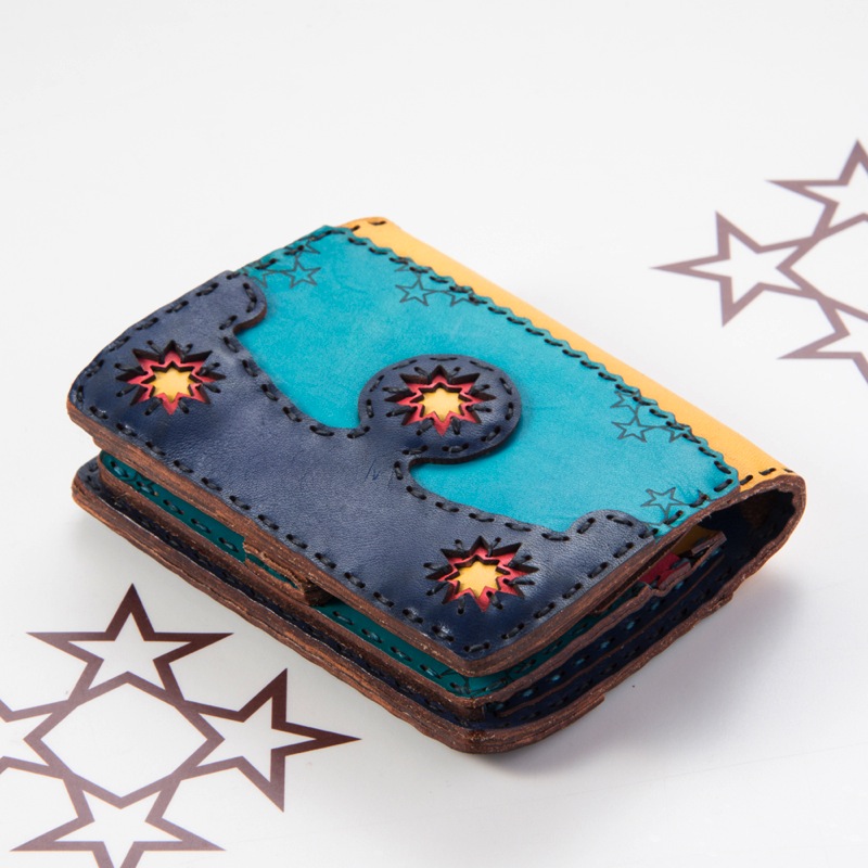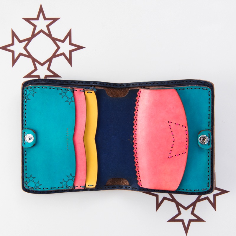 柔らかなディティールに施されたステッチワークが秀逸なショートウォレットです。八芒星のアクセントとモダンな形を組み合わせたデザインで、本アイテムのコインポケットは内側にあるため、「ANTLIA」よりもコンパクトな印象に。オジャガデザインらしいカラフルなアイテムを取り揃えました。※商品のDカンはオプションで取り付け可能です。