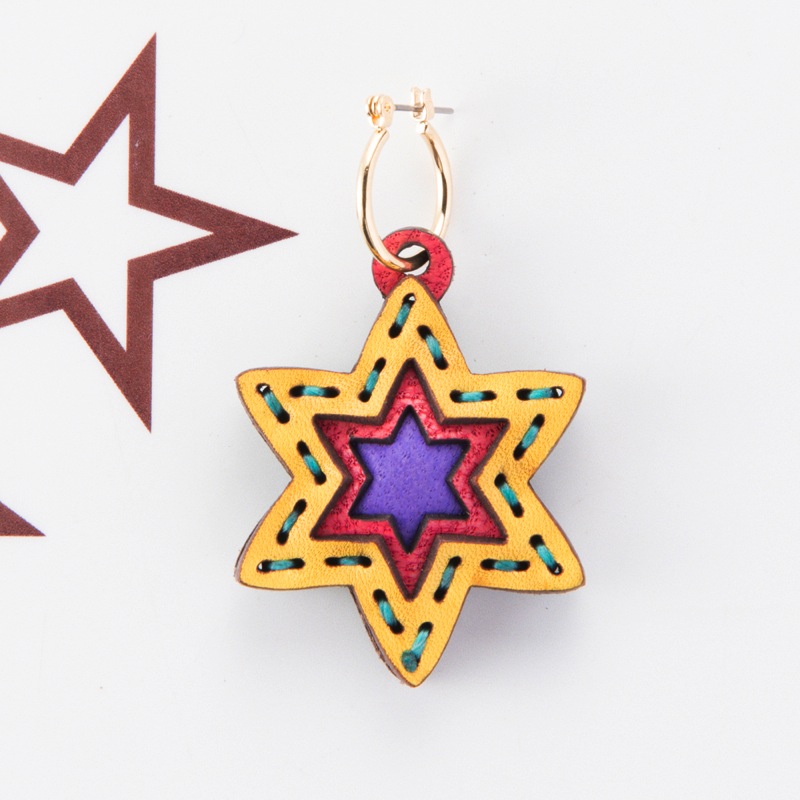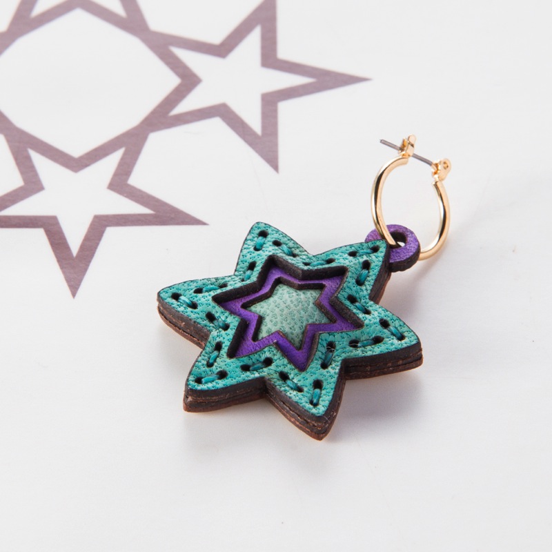 六芒星ピアスです。大ぶりなサイズがワンポイント使いに可愛いらしく仕上げてくれるアイテムです。シンプルなカラーリングのものからポップなカラーリングのものまで、豊富なバリエーションも嬉しいシリーズです。全て一点ものなので、片耳ずつ異なった色合いでお楽しみいただけます。※片耳用になります。