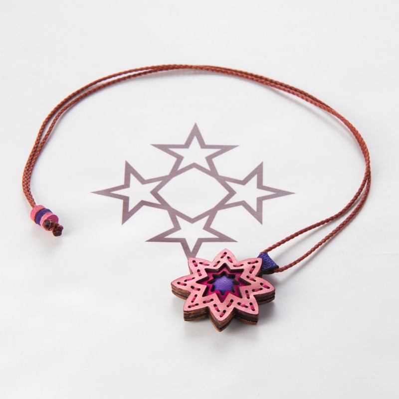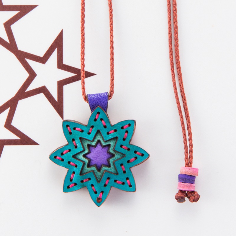 八芒星ネックレスです。小ぶりなサイズがワンポイント使いに可愛いらしく仕上げてくれるアイテムです。シンプルなカラーリングのものからポップなカラーリングのものまで、豊富なバリエーションも嬉しいシリーズです。