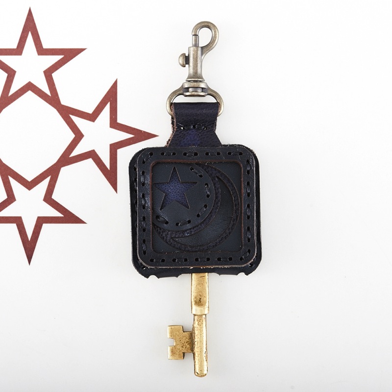 月と星をアレンジしてデザインされたフラップキーキャプです。四角いフォルムのレザーキャンバスの中にデザインされたイメージが、まるで風景を描きだしたようなアイテムに仕上がっています。各色1点のみの展開となっています。