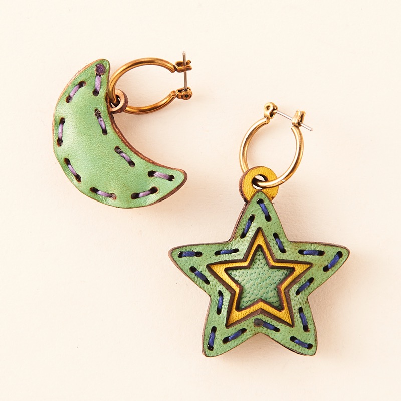 月と星で片耳ずつ違ったデザインをお楽しみ頂けるセットピアスです。