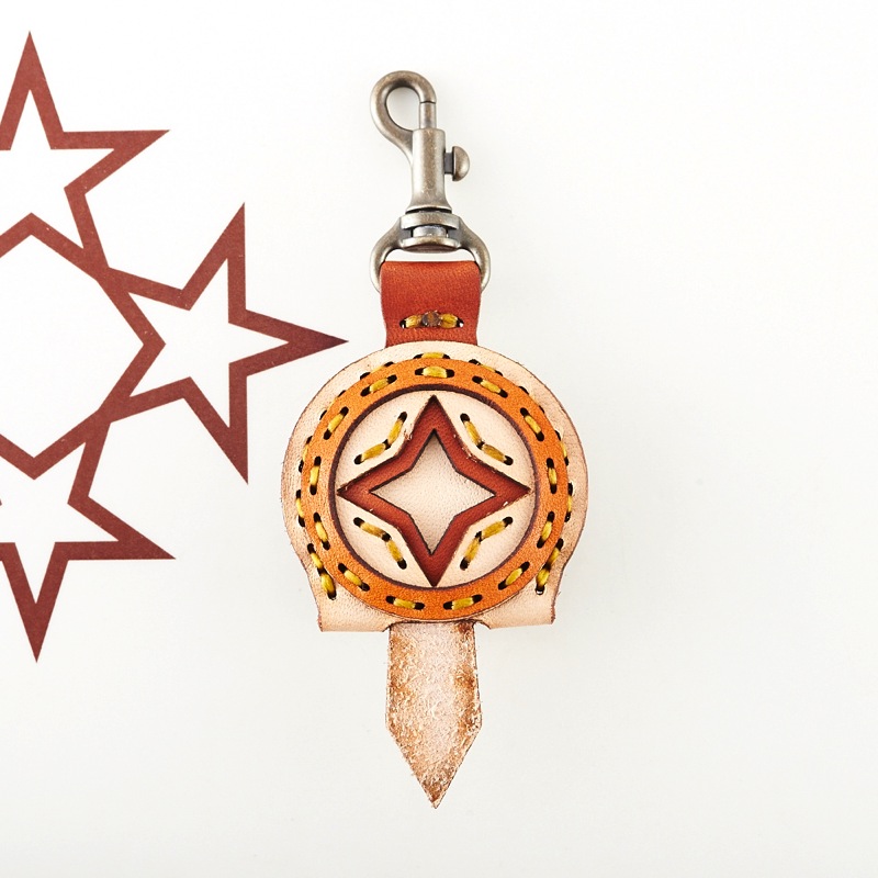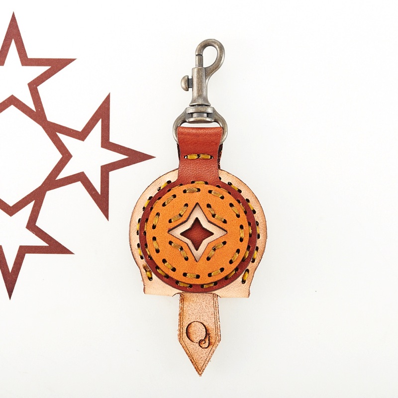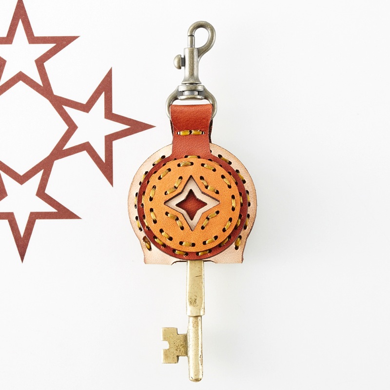 四芒星がデザインされたフラップキーキャップです。表裏に四芒星がデザインされており、2つの表情を楽しめるアイテムになっています。たくさんの色のレザーパーツと、カラフルなステッチが可愛らしいアイテムです。