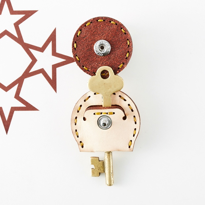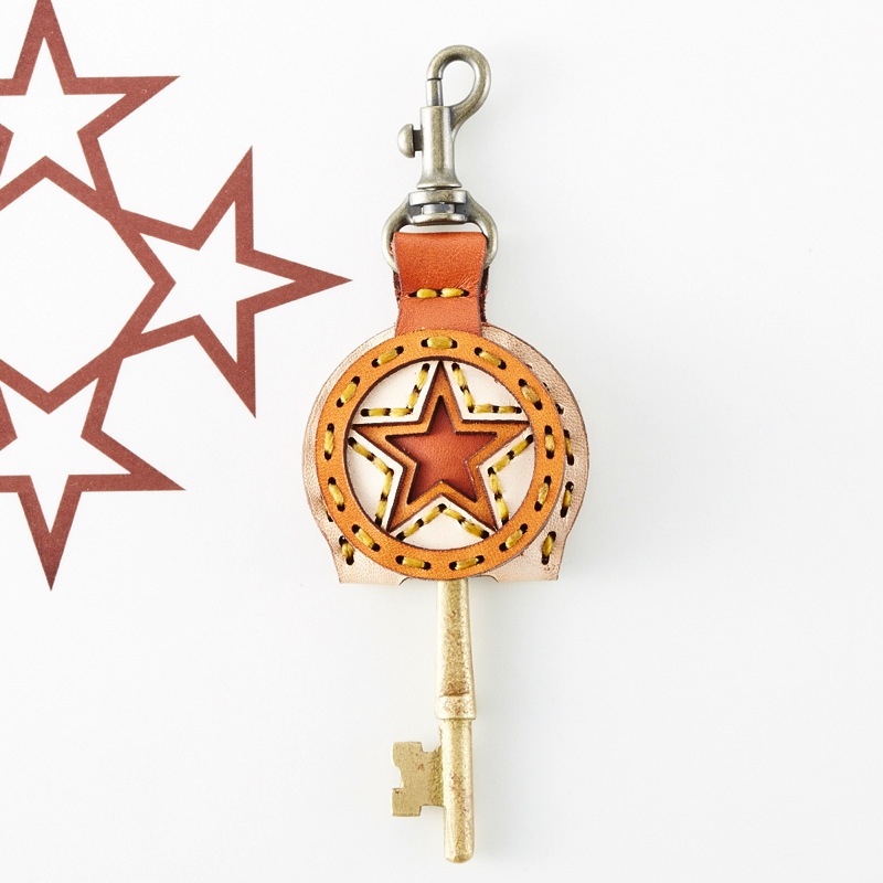 五芒星を表面にデザインしたフラップキーキャップ。カラフルなレザーパーツと刺繍糸を使ったポップなものから、シンンプルでクラシックなカラーリングのものまで豊富なカラーバリエーションとなっています。自分だけのお気に入りのカラーを探しましょう。