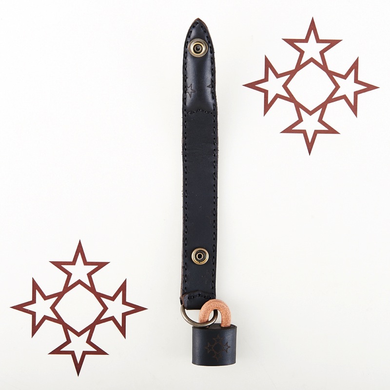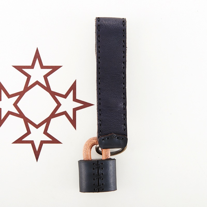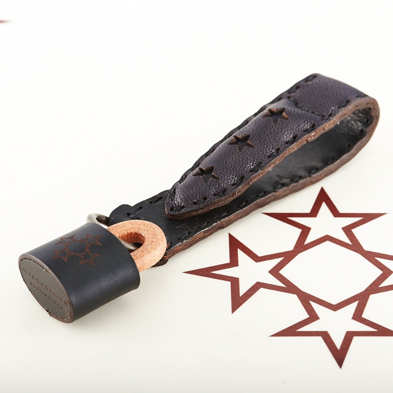 3つの星が並べられたデザインが可愛らしいフラップタイプのキーホルダーです。ロゴが焼印された南京錠をモチーフにしたアクセサリーも付属します。取り外し可能なフラップ式で機能面にも優れており、鞄やベルトループにつけてお使いください。
