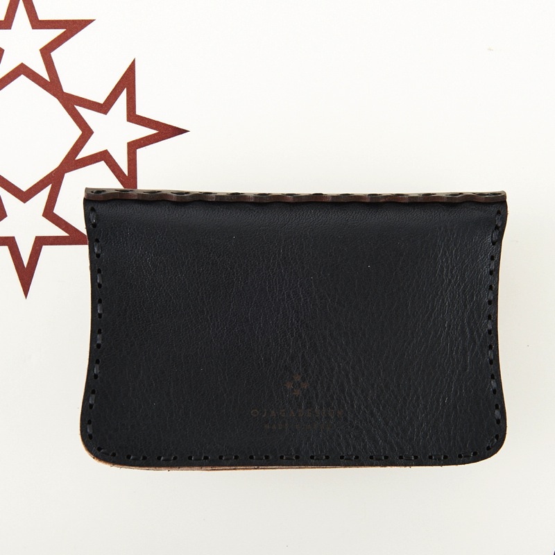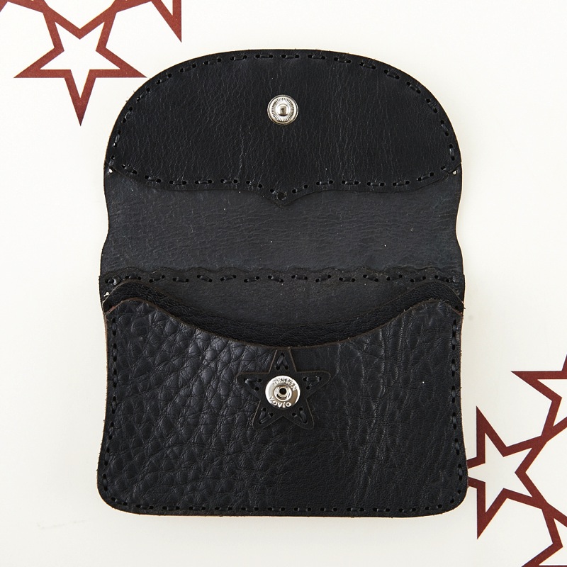 ご要望の多かったアイテムがついに新作で登場。名刺入れとしてもお使い頂けるカードケースです。新色のキャメルレザーを使用し、独特の風合いを楽しめるアイテムとなりました。レザーの重なりがポイントの五芒星とクロスステッチをあしらい、他にはないデザインに。ボタン部分の五芒星もポイントです。