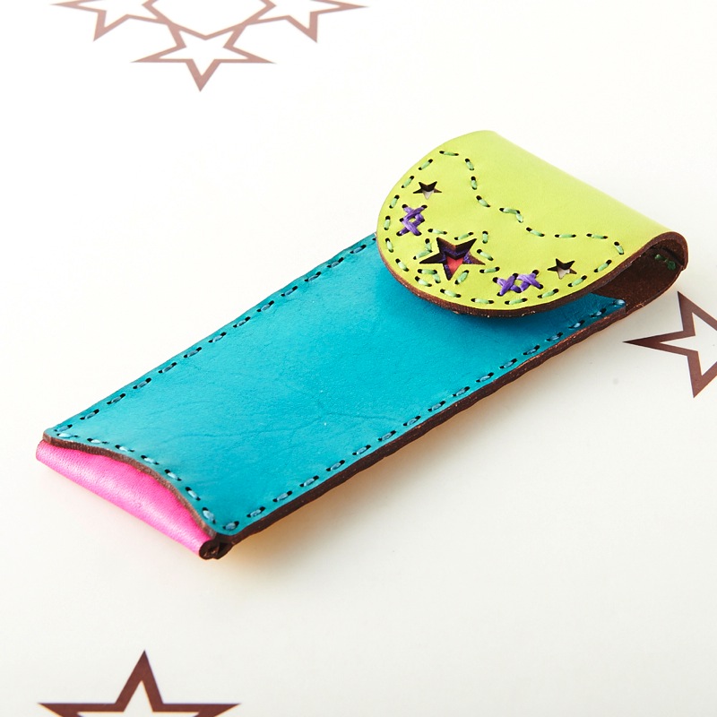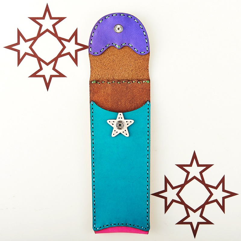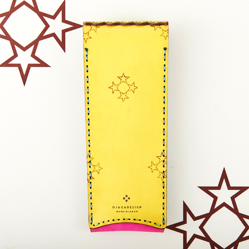 ご要望の多かったアイテムがついに新作で登場。スマートなペンケースです。新色のキャメルレザーを使用し、独特の風合いを楽しめるアイテムとなりました。レザーの重なりがポイントの五芒星とクロスステッチをあしらい、他にはないデザインに。ボタン部分の五芒星もポイントです。