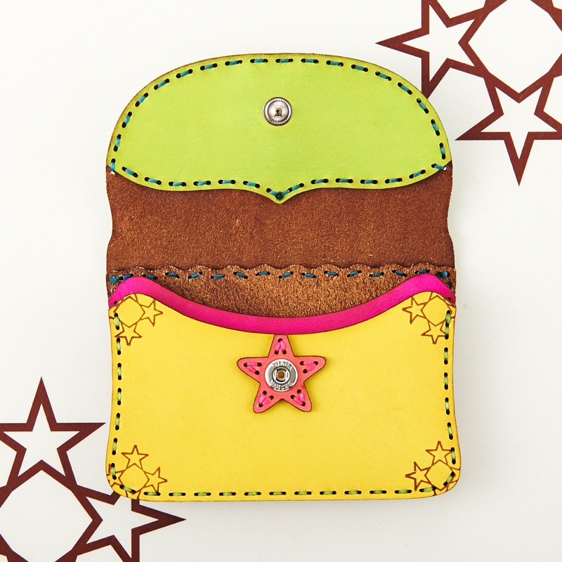 ご要望の多かったアイテムがついに新作で登場。名刺入れとしてもお使い頂けるカードケースです。新色のキャメルレザーを使用し、独特の風合いを楽しめるアイテムとなりました。レザーの重なりがポイントの五芒星とクロスステッチをあしらい、他にはないデザインに。ボタン部分の五芒星もポイントです。