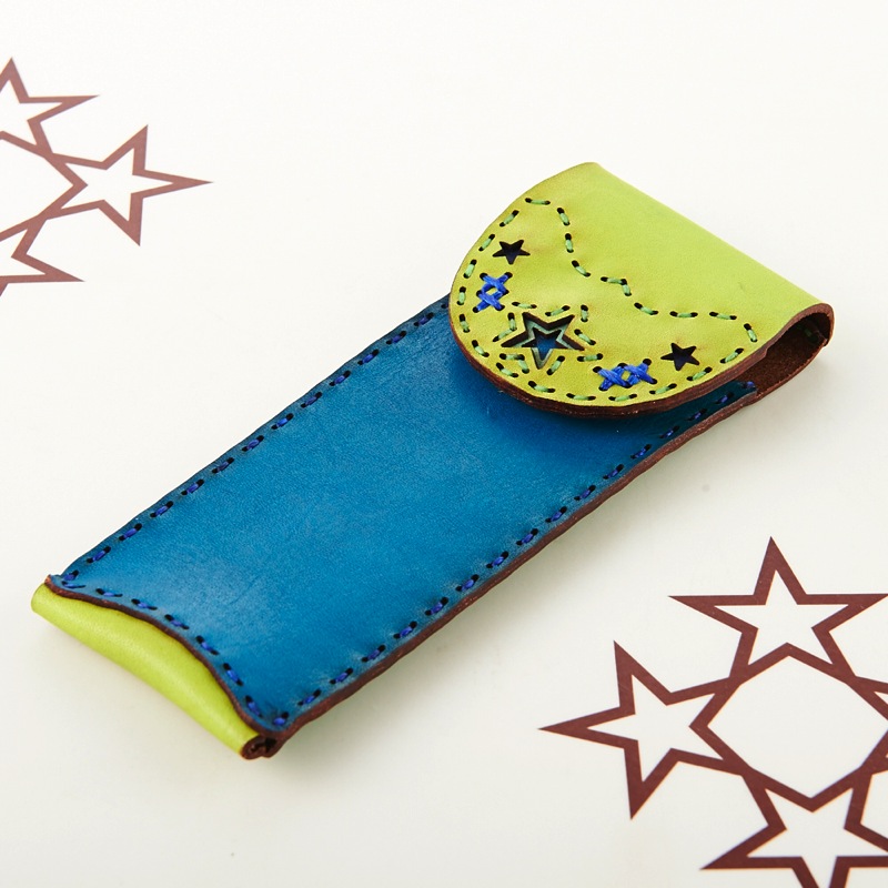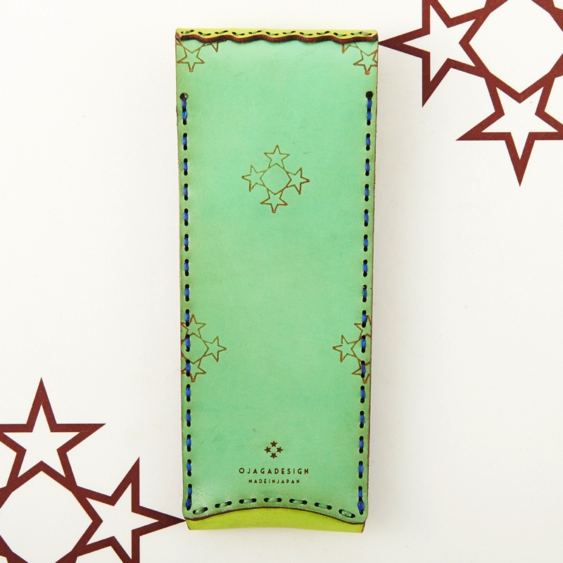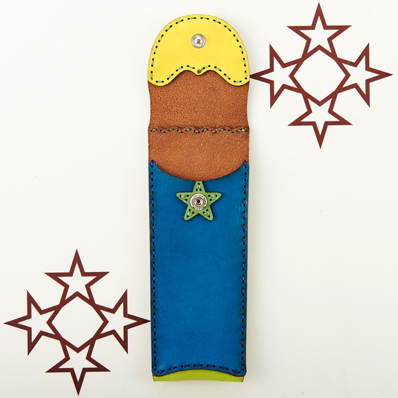 ご要望の多かったアイテムがついに新作で登場。スマートなペンケースです。新色のキャメルレザーを使用し、独特の風合いを楽しめるアイテムとなりました。レザーの重なりがポイントの五芒星とクロスステッチをあしらい、他にはないデザインに。ボタン部分の五芒星もポイントです。