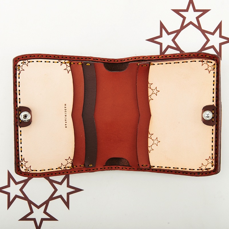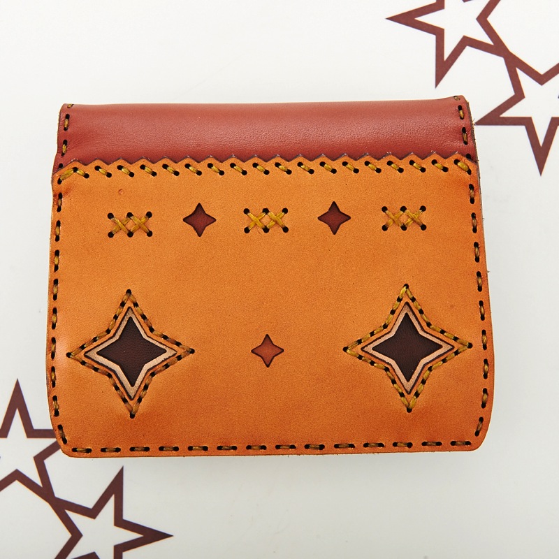 ダイヤの形のような四芒星がデザインされたショートウォレットです。外側に付いたコインケース部分は小銭が見やすい大きめな作りになっており、カードケースはたくさんのカードの収納が出来るよう、マチが付いております。使い込むほど味がでてくる革ならではの風合いを楽しめます。※商品のDカンはオプションで取り付け可能です。Dカン取り付けのご注文はこちらから↓https://szhotelkc.com/products/detail/15871?category_id=
