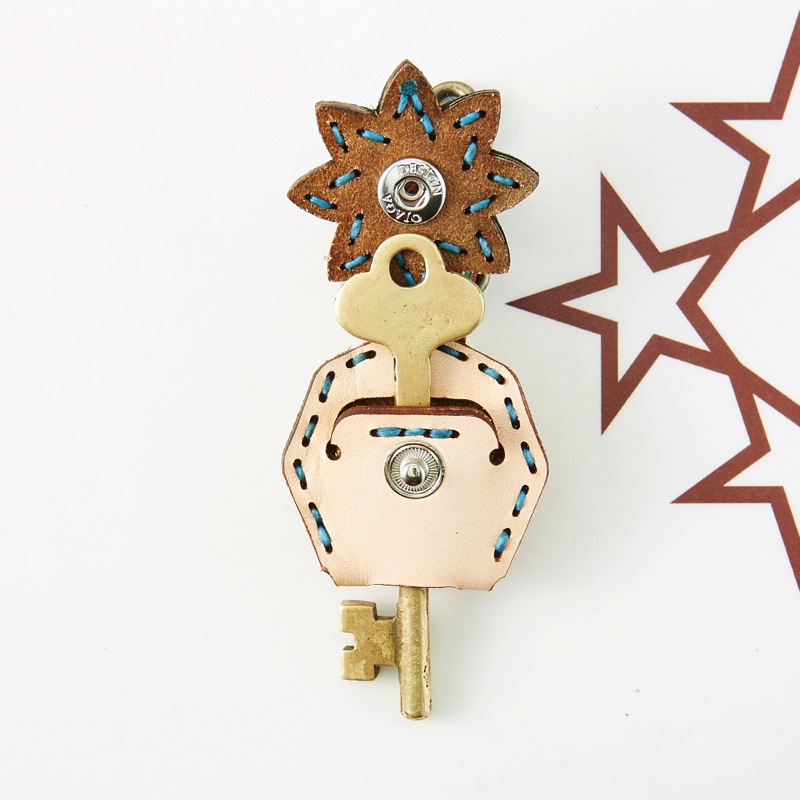 CANDYコレクションからピンクとスカイブルーの2色展開のアイテムが登場。スエードを使用し、革の質感の差をお楽しみ頂けるデザインです。3枚のレザーを重ねて八芒星がデザインされたキーキャップです。重なったフラップ部分のレザーが、バランス良く配色されて花のようなイメージとなっています。鮮やかな革パーツとカラフルなステッチが可愛らしいアイテムです。