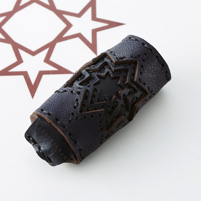 レザーを贅沢に4枚重ね、八芒星を表現したライターケースです。繊細なレザーのカッティングと細かなステッチで、高級感のある仕上がりとなりました。BICのライターがぴったり入るサイズです。
