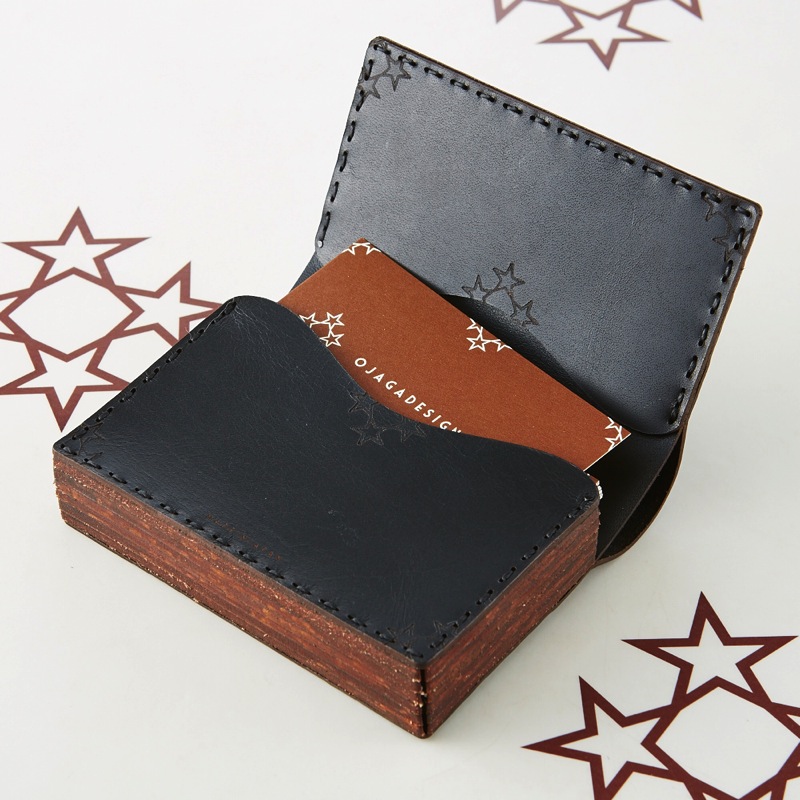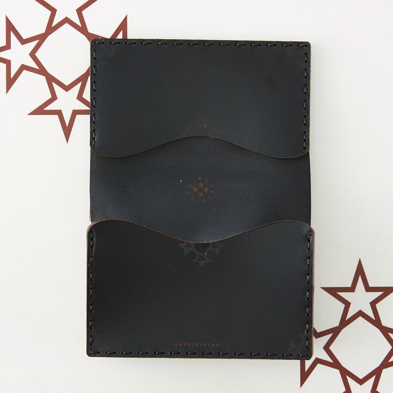 大きなマチがついて、たくさんのカードが入る新型カードケースです。内側には数枚収納可能なポケットと、名刺が約50枚収納可能なポケットが備わった便利な仕上がり。カードケース、名刺入れとしてはもちろん、トランプケースとしてもおすすめ。シンプルにオジャガスターの焼き印のみをほどこし、ビジネスシーンにもお使い頂けるデザインとなっております。