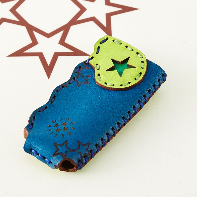 オジャガデザインのロゴマークである五芒星柄がベースとなり、握ったときの手にフィットするフォルムのライターケースです。両面で異なる2つの表情を楽しむことができるものとなっています。BICのライターがぴったり入るサイズです。