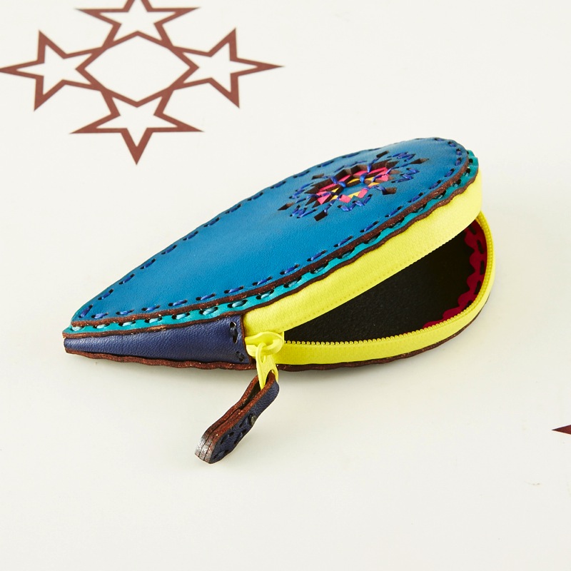 ドロップ型がスタイリッシュなコインケースです。 細かなカッティングと4層のレザーで表現された印象的な六芒星に、細かなステッチの色合いが引き立ちます。ファスナートップにレザーを着けることにより、使いやすい仕上がりとなりました。コインケースだけでなくミニポーチとしてもお使い頂けます。