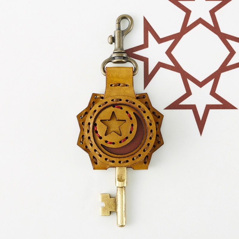 人気のオリーブとチョコのカラーで配色した「オリーブコレクション」月と星がデザインされたキーキャップです。丸いフラップ部分とは対照的なギザギザした背面が特徴です。便利なナスカン付きなので、ベルトループやキーホルダーに付けてお使い頂けます。