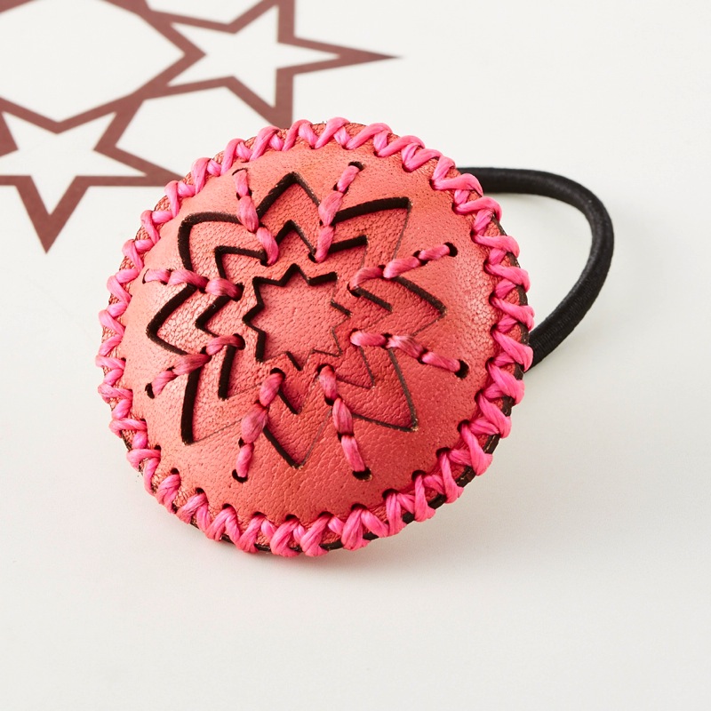 インパクトのあるディティールがポイントの八芒星がデザインされたヘアーバンドです。4層のレザーパーツを使ったことで立体的でカラフルなイメージとなっています。アウトラインにステッチを縁取って細部にまでこだわったアイテムです。