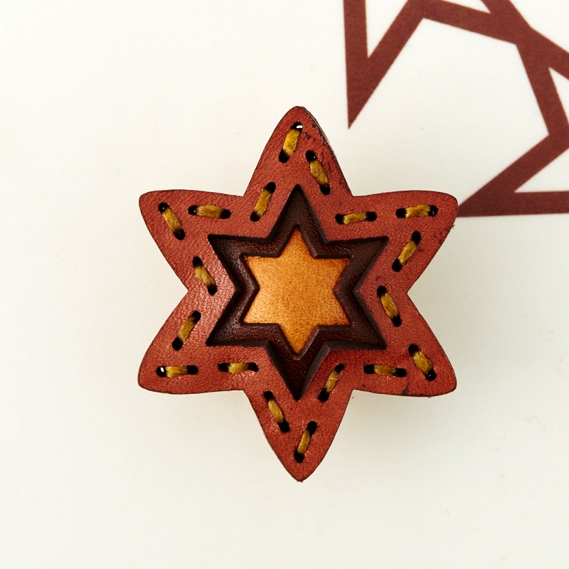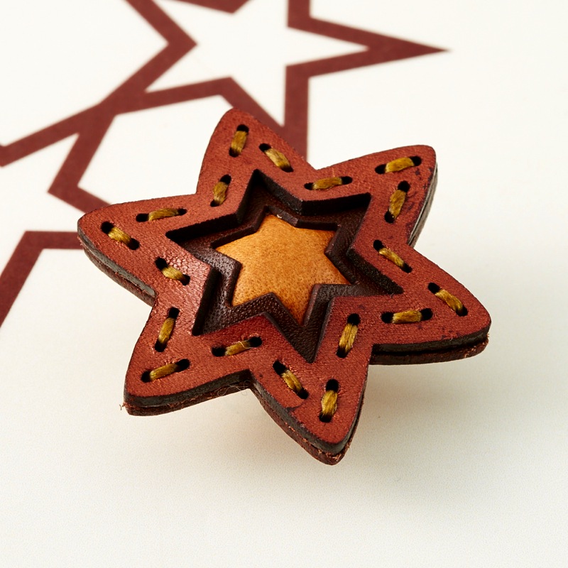 六芒星型の片耳用イヤリングです。三枚の革を重ねた存在感のある仕上がりは、ファッションのアクセントに最適です。耳が痛くなりにくいクリップタイプの金具を使用しております。片耳用なので、左右違ったデザインでのコーディネートもおすすめです。