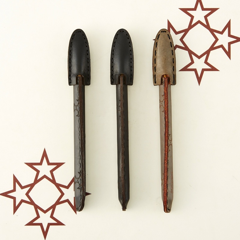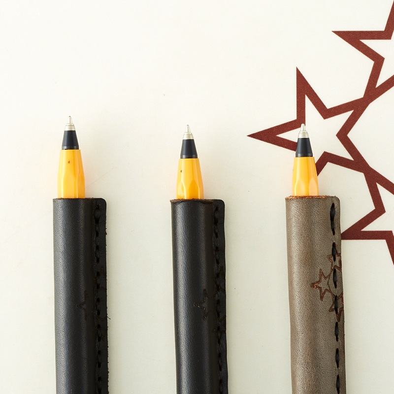 焼き印を施したシンプルなペンカバーです。よく使うペンをおしゃれに彩ることが出来る、遊び心が溢れるアイテム。レザー本来の質感を手で楽しめ、使い込むごとに革が手に馴染むので持ちやすさがアップします。3本セットなので、ご友人やご家族とのシェアもおすすめ。最大径Φ13.7mm/全長149mmのペンが入るサイズです。