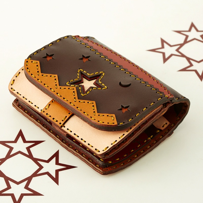 コインケースが表に付き、豊富なカードケースが内側に入った二つ折りタイプのショートウォレットです。
