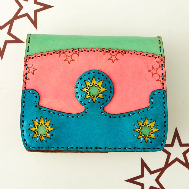 柔らかなカーブを描いたディティールと、繊細なステッチワークが秀逸な八芒星のショートウォレットです。外側に付いたコインケース部分は小銭が見やすい大きめな作りになっており、カードケースはたくさんのカードの収納が出来るよう、マチが付いております。使い込むほど味がでてくる革ならではの風合いを楽しめます。※商品のDカンはオプションで取り付け可能です。実際の商品にはDカンは含まれません。Dカン取り付けのご注文はこちらから↓https://szhotelkc.com/products/detail/15871?category_id=取り付けイメージ