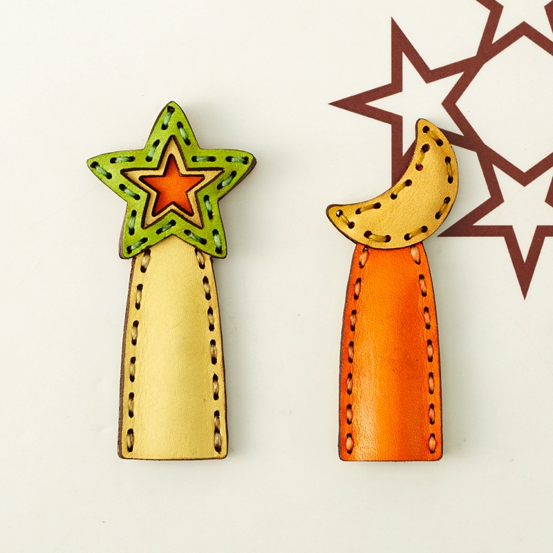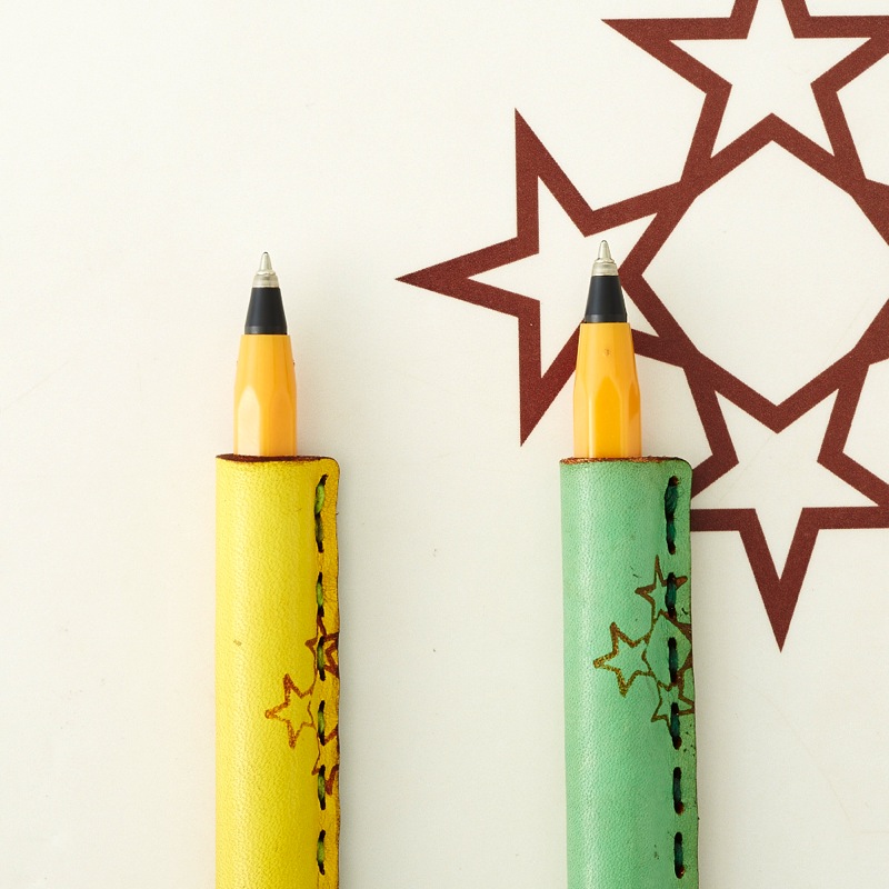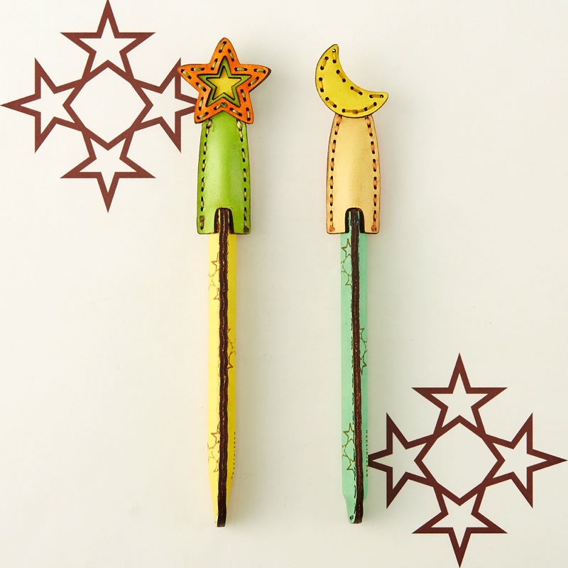 月星モチーフのペンカバーです。よく使うペンをおしゃれに彩ることが出来る、遊び心が溢れるアイテム。レザー本来の質感を手で楽しめ、使い込むごとに革が手に馴染むので持ちやすさがアップします。2本セットなので、ご友人やご家族とのシェアもおすすめ。最大径Φ13.7mm/全長149mmのペンが入るサイズです。