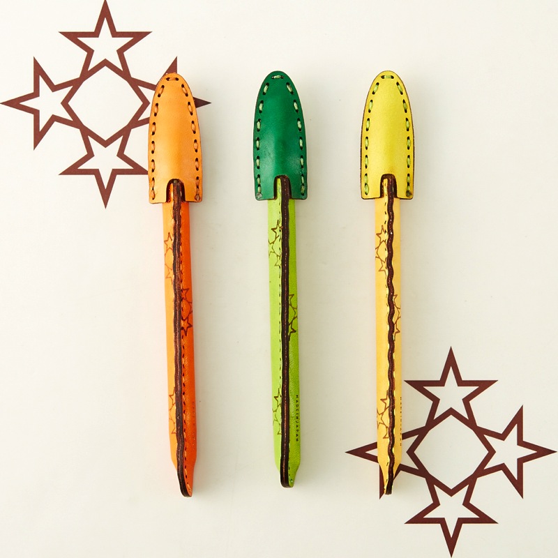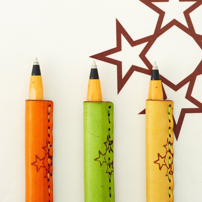 焼き印を施したシンプルなペンカバーです。よく使うペンをおしゃれに彩ることが出来る、遊び心が溢れるアイテム。レザー本来の質感を手で楽しめ、使い込むごとに革が手に馴染むので持ちやすさがアップします。3本セットなので、ご友人やご家族とのシェアもおすすめ。最大径Φ13.7mm/全長149mmのペンが入るサイズです。