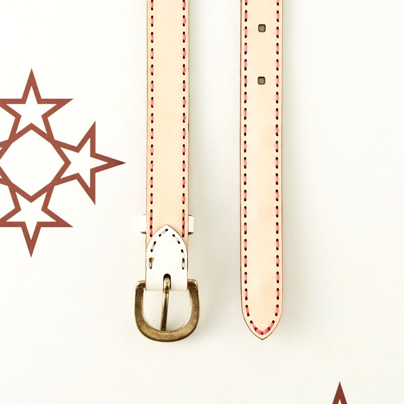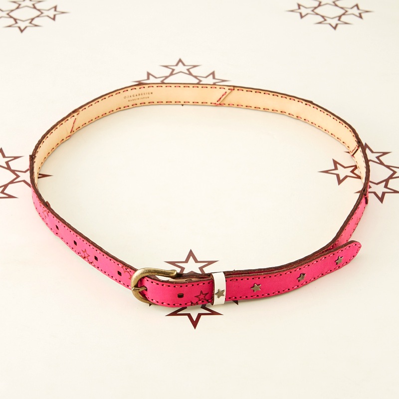 発色の良いレザーにオジャガスターの焼き印を施し、さりげない星スタッズがワンポイントになったベルトです。