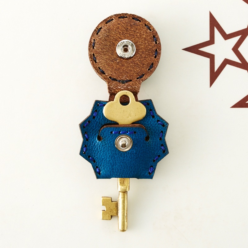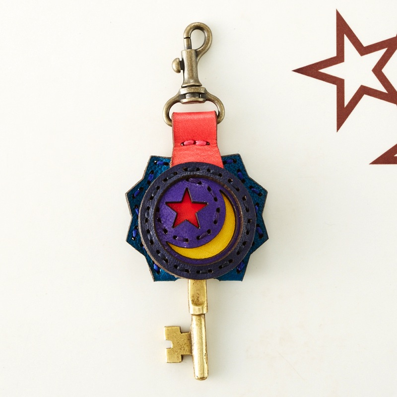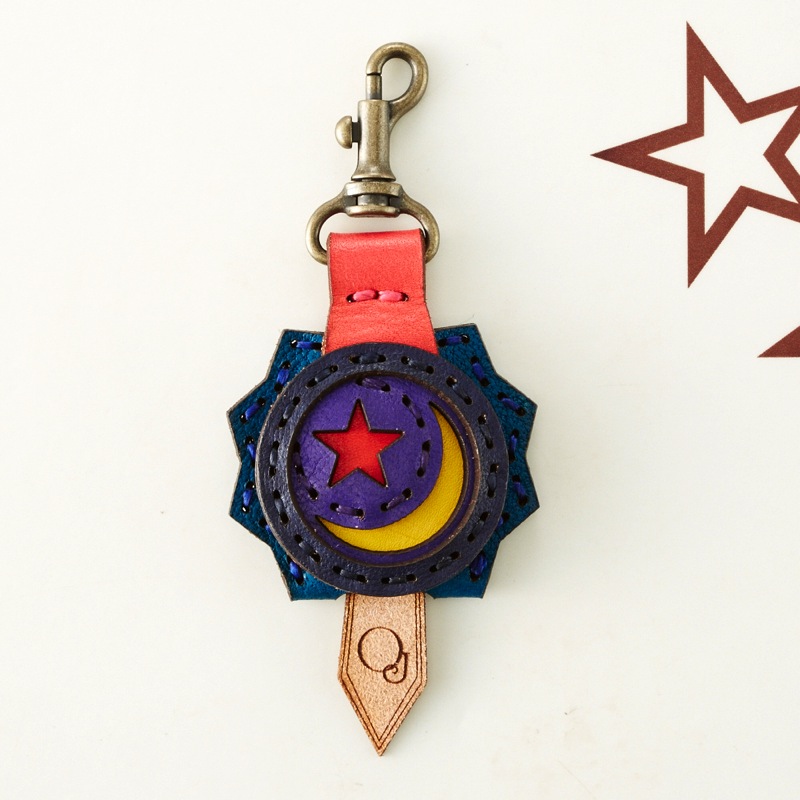 月と星がデザインされたキーキャップです。丸いフラップ部分とは対照的なギザギザした背面が特徴です。便利なナスカン付きなので、ベルトループやキーホルダーに付けてお使い頂けます。