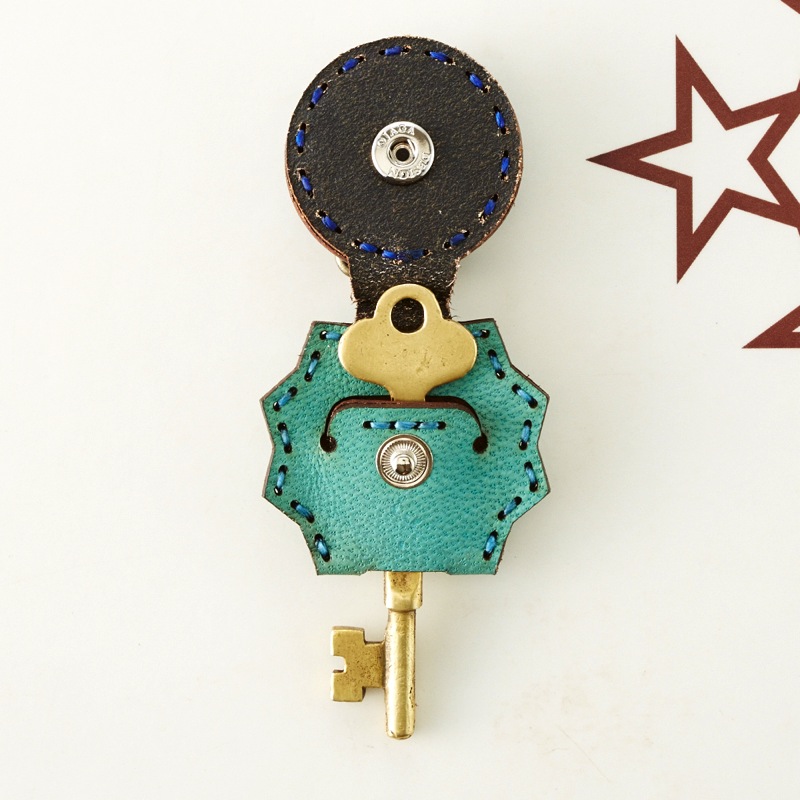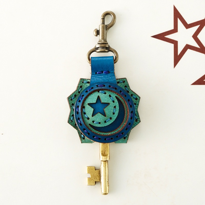 月と星がデザインされたキーキャップです。丸いフラップ部分とは対照的なギザギザした背面が特徴です。便利なナスカン付きなので、ベルトループやキーホルダーに付けてお使い頂けます。