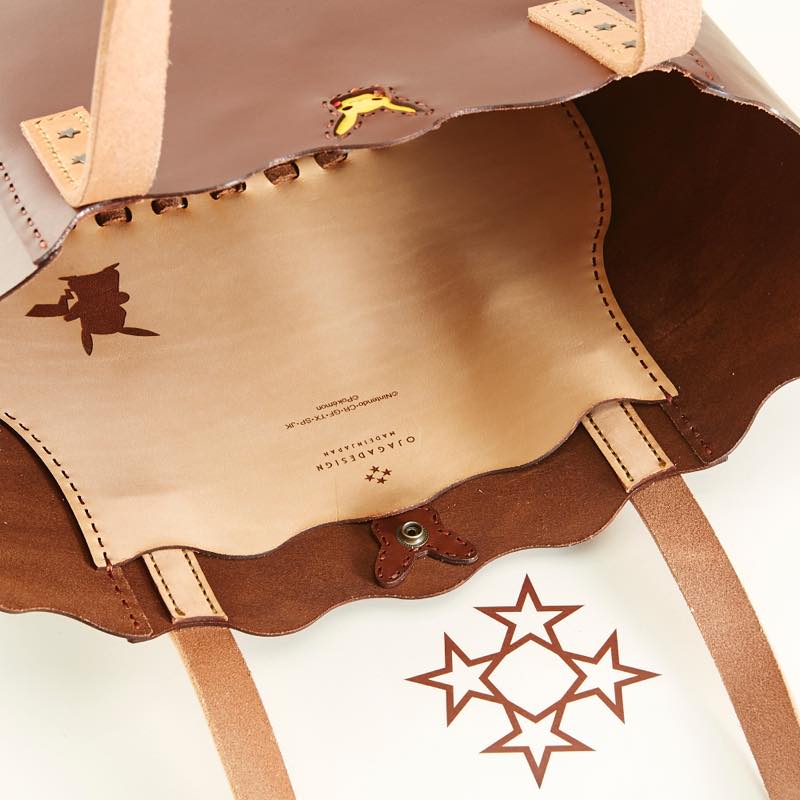 肩掛けが出来るしっかりとしたレザーハンドルと、ファッションを選ばないブラウンをメインとしたカラーで使いやすさとデザイン性を兼ね備えました。